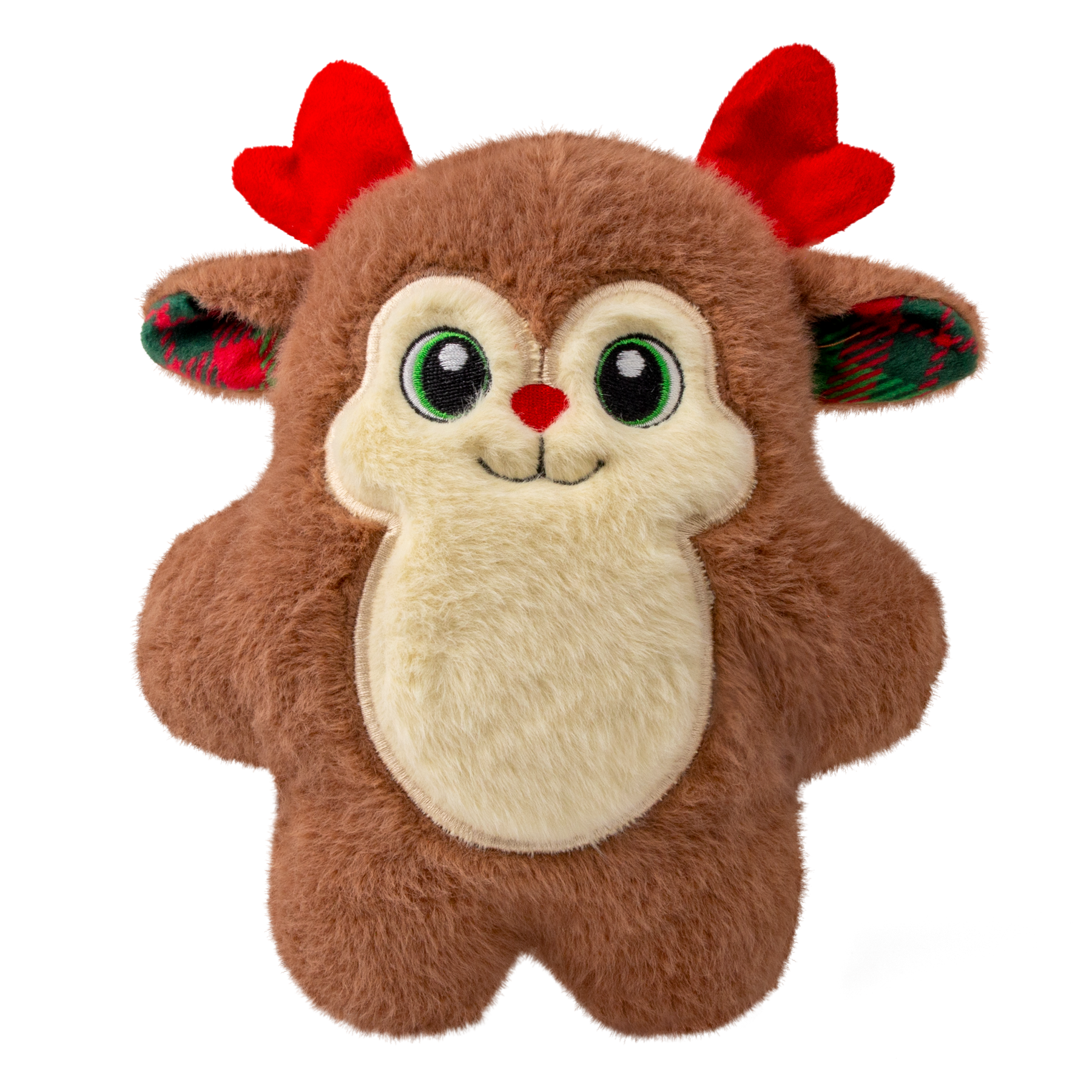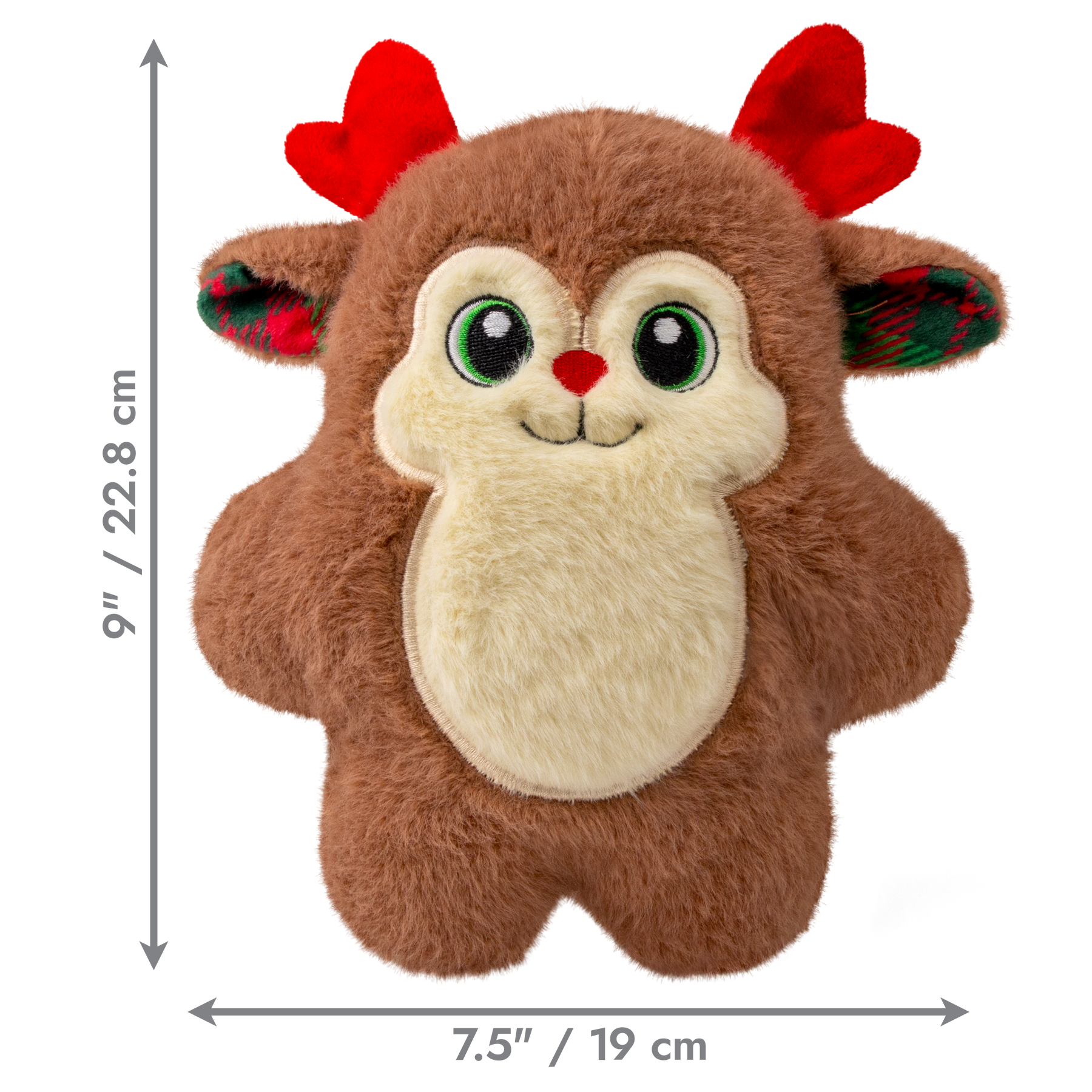 KONG Holiday Snuzzles Reindeer is plump-full of fun! Filled with a full-body squeaker that gives a long, loud call and a super-plush exterior that is perfect for holiday snuggles. The dense mouthfeel extends engagement by rewarding appropriate chewing with every bite. Ideal for indoor fun when the weather outside is frightful, the flat shape is ideal for dogs of all different sizes.