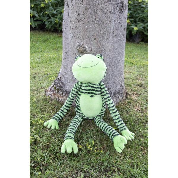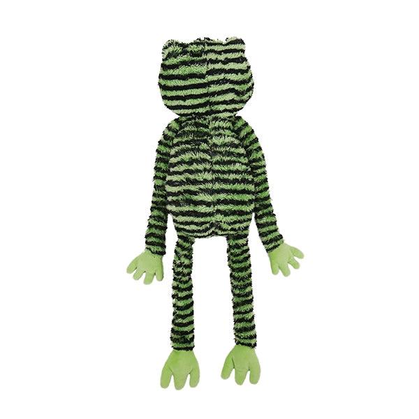 A beloved toy can become a source of comfort for a dog, just as it can for a child. Many dogs enjoy looking after their toys and taking them everywhere.Promotes their natural behaviour such as foraging, exploring and playing. Toys are fantastic at preventing problem behaviours such as excessive barking.Froggy long legs contains five squeakers in total and has a squeaker in both hands and feet. Stuffed / soft toy can be a great option as they hold scents, which can aid in separation anxiety if you are away.