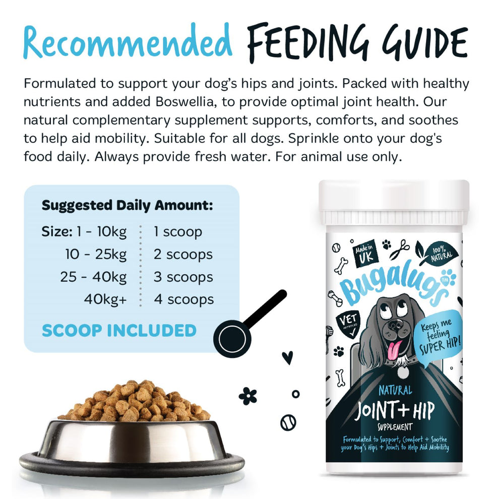 Support your dog’s joints & hips with the Bugalugs 100% Natural Joint & Hip Powder Supplement. Our advanced joint & mobility supplement for dogs helps support joint health, joint stiffness, supports mobility, sustains long-term joint health + it is suitable for all breeds & sizes.