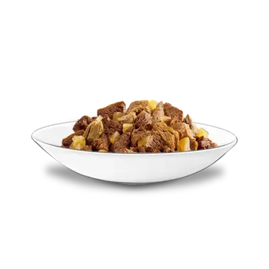 With Beef and Poultry: Composition: Meat and animal derivatives[1] (14%, of which beef 2%, poultry 2%), vegetable protein extracts, fish and fish derivatives, minerals, various sugars. [1]chunks: 44% Meat and animal derivatives.