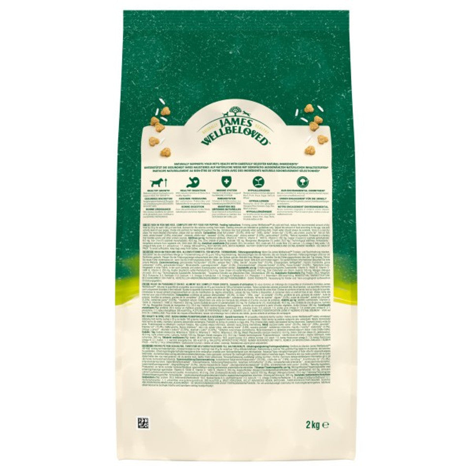 JAMES WELLBELOVED supports your dog's health with carefully selected ingredients. Since 1992, JAMES WELLBELOVED has been making naturally healthy, complete & balanced wet and dry dog food, following the belief that good health can be found with a hypoallergenic diet. Food excludes common allergens and has all the goodness they need. Proactively supports your pet's health with carefully selected natural ingredients