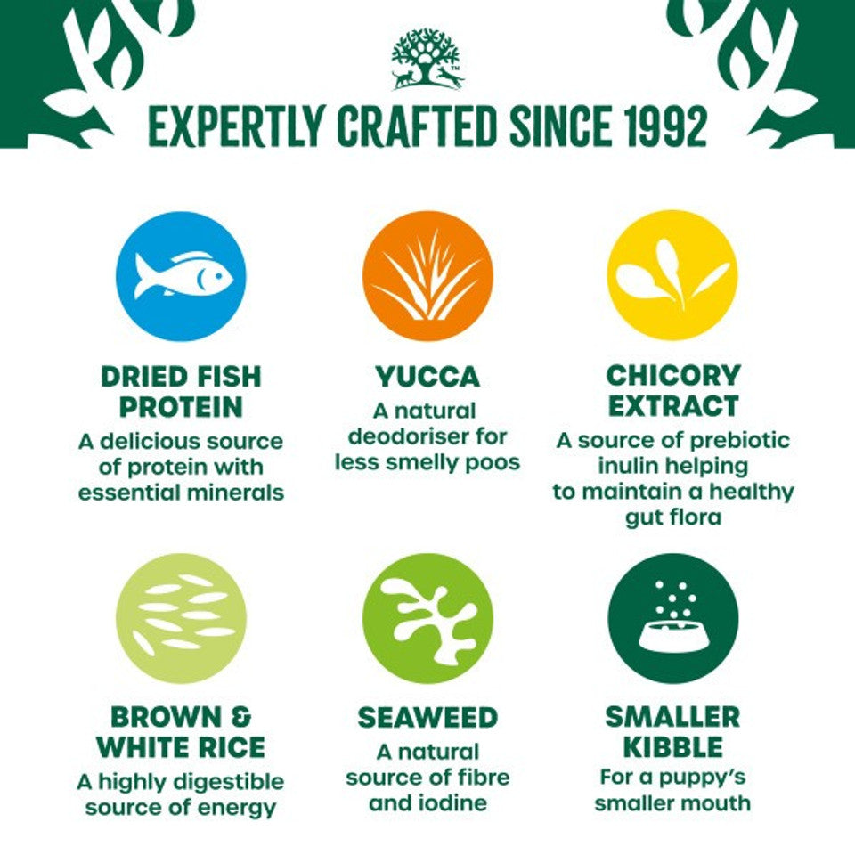 Crafted with a handful of nature's nourishing ingredients and combined with flavourful turkey to create highly digestible, tasty dry dog food. Our recipes support digestion, immunity and promote healthy skin & coat. With calcium and phosphorous to support healthy growth, you can be sure that your puppy is enjoying a balanced diet.