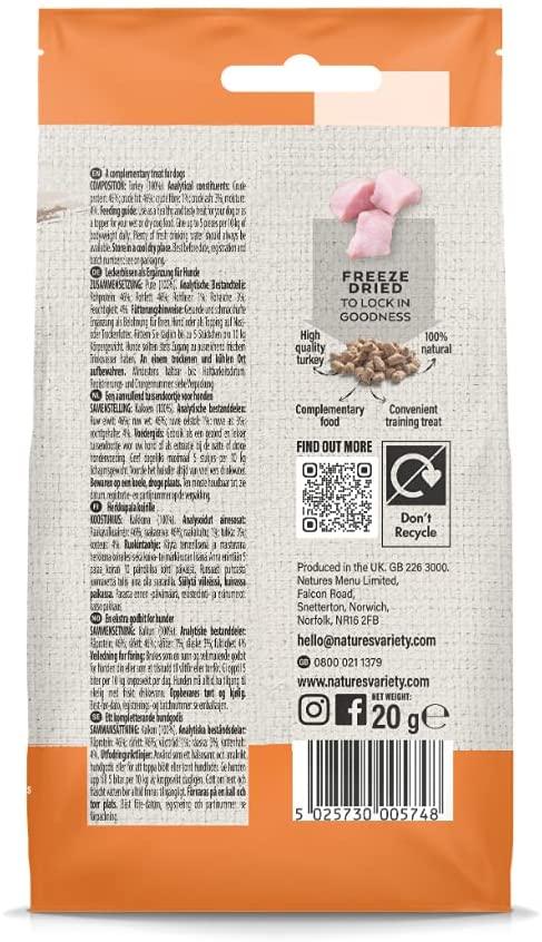 The ultimate reward for your dog, nothing but 100% quality turkey freeze dried into bite-sized dog treats that are full of flavour.