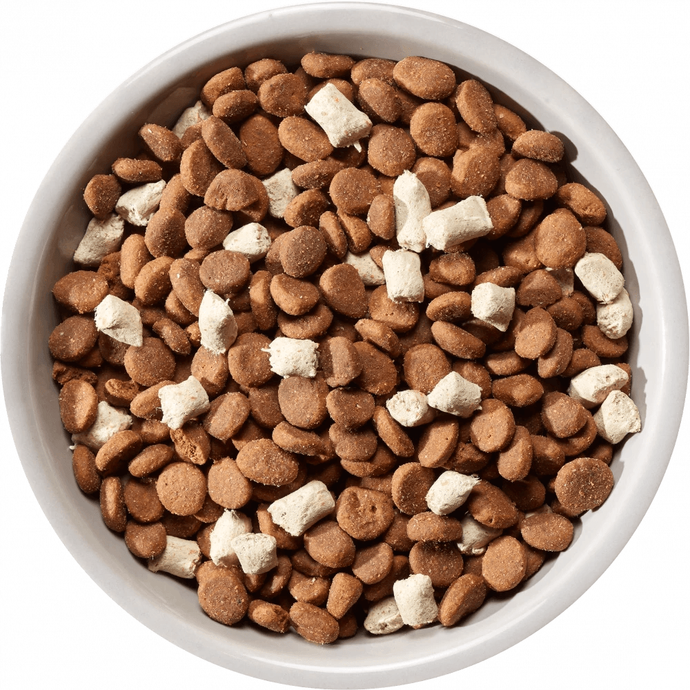 The complete and natural dry dog food with an added boost. Gently freeze-dried, real meat pieces with delicious grain-free kibble made from deboned free range chicken and nutritious superfoods.
