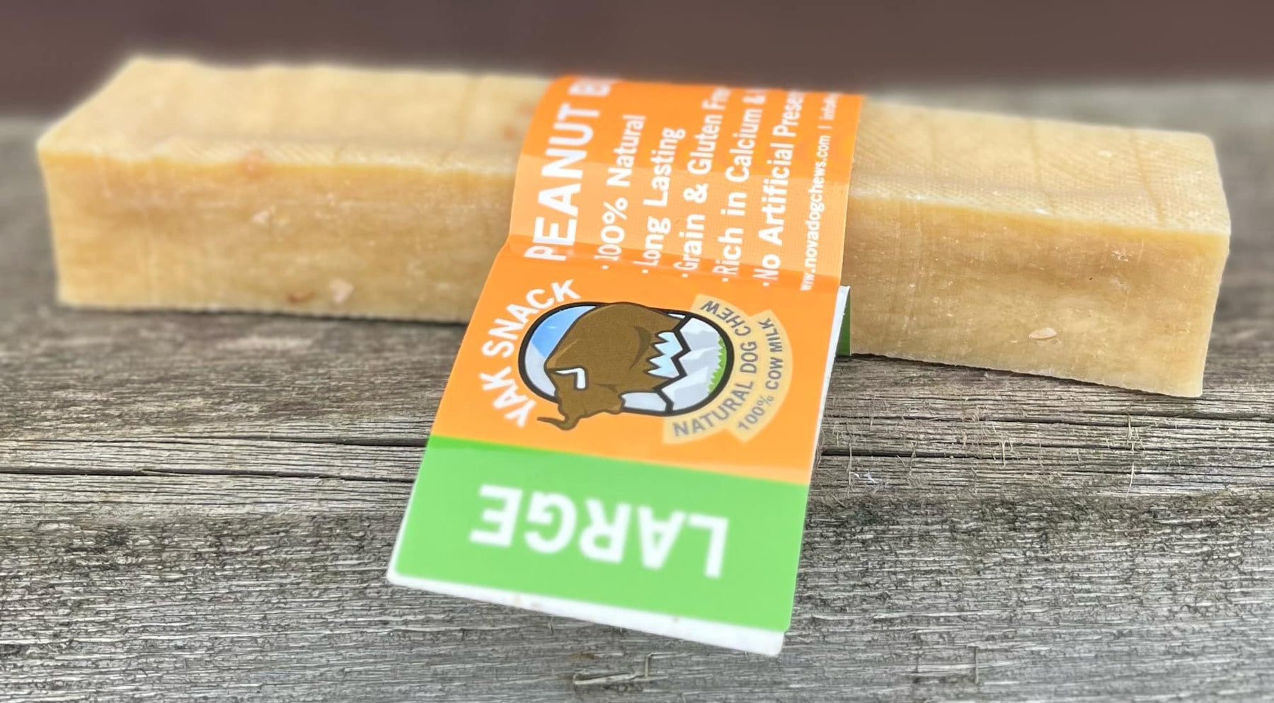 Our peanut butter yak snacks are made with 95.9% cow’s milk and 4% peanut butter powder/nuts, they are turned into a tasty dog chew using traditional Himalayan methods. The milk has lactose removed during the manufacturing process, it is rich in calcium and protein.