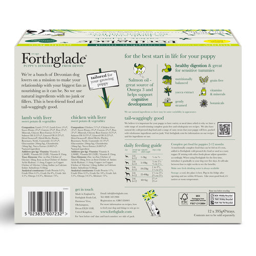 Our award-winning grain free recipes are great for sensitive tummies. The sweet potato has a high energy density, perfect for bouncy puppies! In addition, all of our puppy recipes contain salmon oil, a source of omega 3 to help brain development with higher levels of chondroitin and glucosamine to help support bone development and joint health.