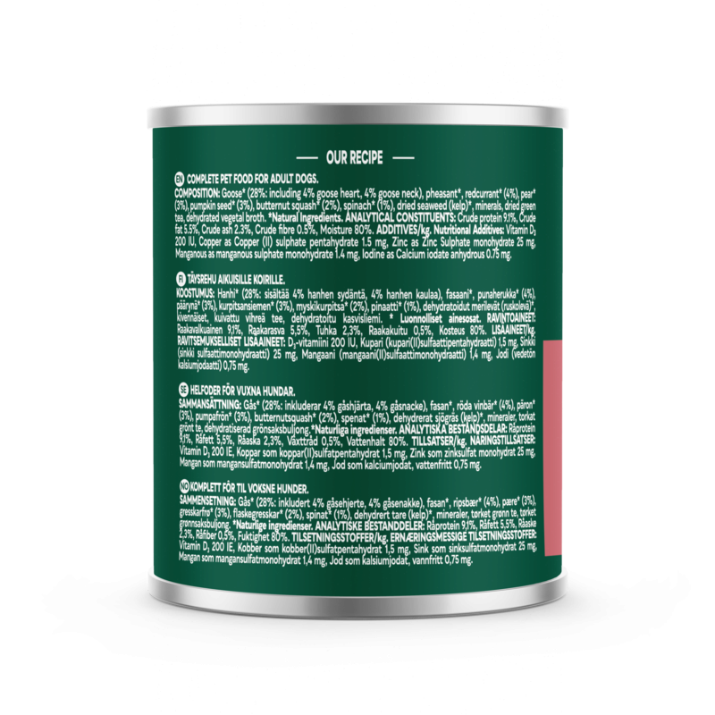 The ultimate choice in real and natural pet food, Country Hunter offers only the very best for you dog. Our County Hunter cans are seriously meaty, made with pheasant & goose, high quality fruit & veg, blended with superfoods and then gently cooked within the can to retain the goodness and flavour that you dog will love.