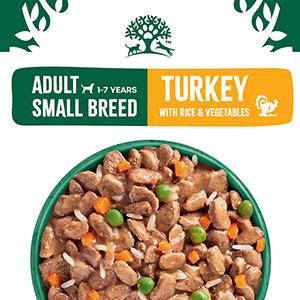 DELICIOUS natural ingredients dog food with smaller chunks, specially designed for small breed dogs