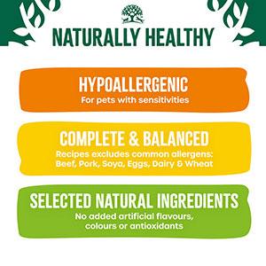 Hypoallergenic dog food recipe made with natural ingredients and no added colours or flavours