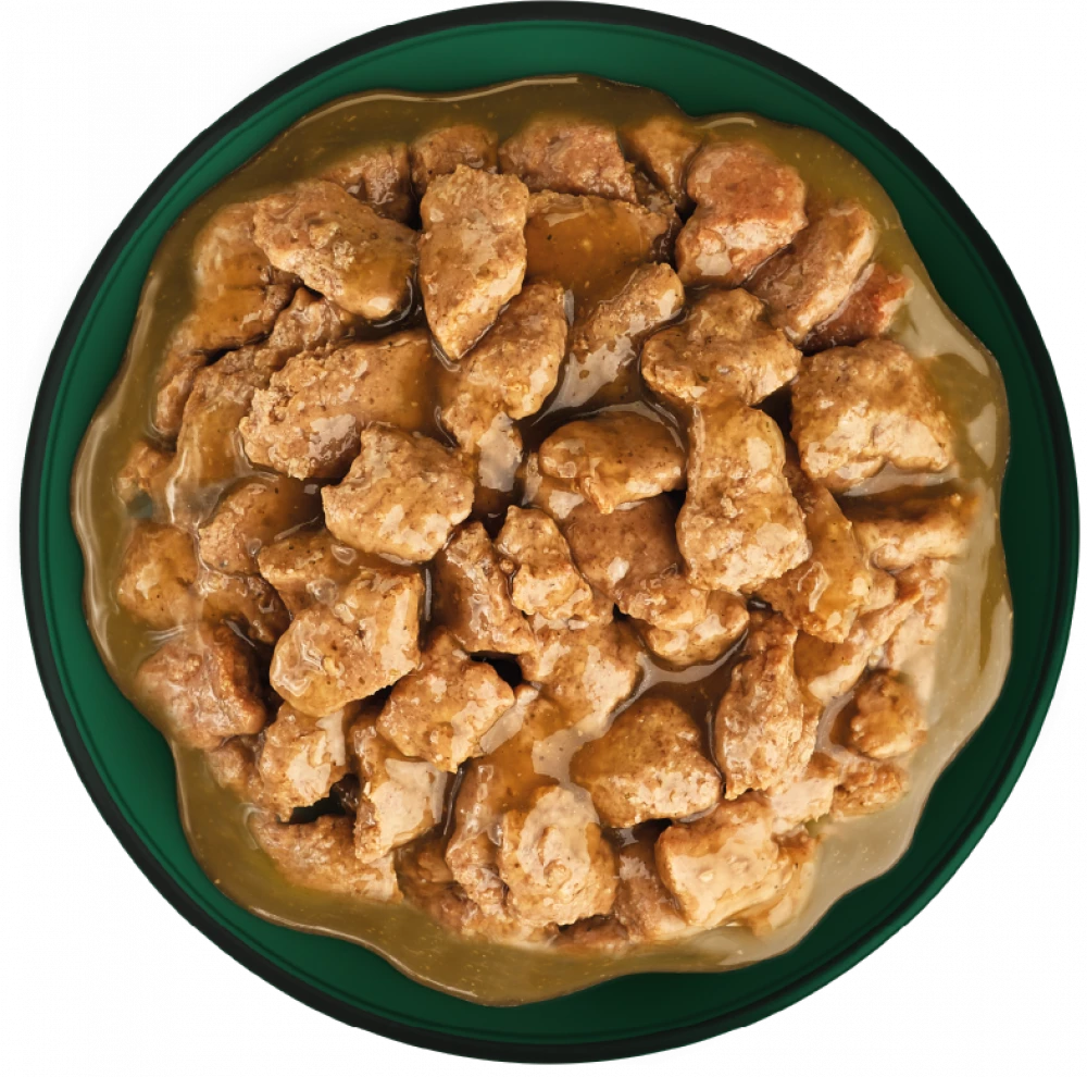 As good as it gets – flavoursome and faff-free. Moist, tender salmon and herb chunks in a wholesome savoury gravy, with no added colours or preservatives. Your dog will love our new range inspired by classic British homely recipes.