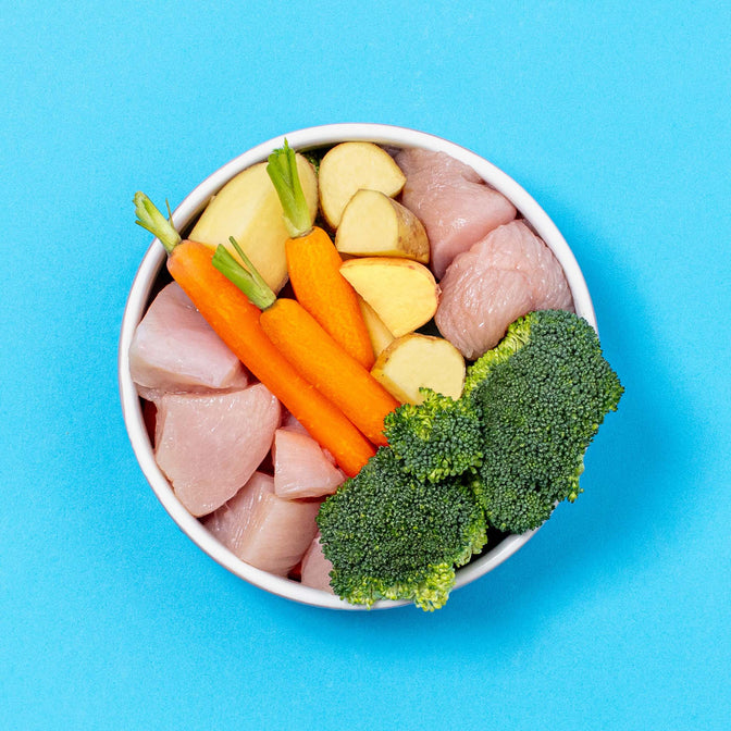 What you're enjoying on your Christmas table, is what they'll get in their grain-free Pooch & Mutt dinner. Including succulent Turkey which contains L-tryptophan - a rich protein source which is vital for the production of serotonin (the happy hormone), and lean free-run chicken for that additional high-meat-content protein source. The medley of natural, fresh veggies means it's bursting with vitamins and minerals to support the immune system, while the added prebiotics encourage healthy digestion to keep them thriving after Santa Paws' arrival.