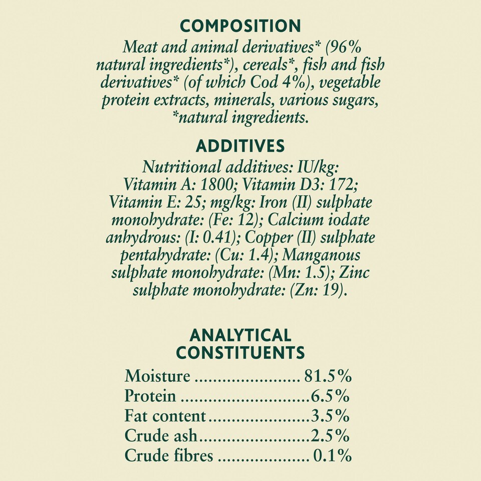 Treat your canine companion to a delightful feast with these classic chunks in jelly. Each 400g tin contains succulent cod pieces swimming in a flavourful jelly, providing a tasty and satisfying meal for your dog. This convenient pack of 12 tins ensures you'll have plenty of meals ready for your four-legged friend. The chunks are carefully prepared to deliver a wholesome dining experience that dogs love. Perfect for regular mealtimes, these tins offer consistent portion sizes and easy serving. The rich, meaty chunks provide a hearty meal that will keep your dog's tail wagging. The jelly helps maintain moisture and enhances the palatability of each serving. Whether served on its own or mixed with dry food, this classic recipe makes mealtime something special for your beloved pet.