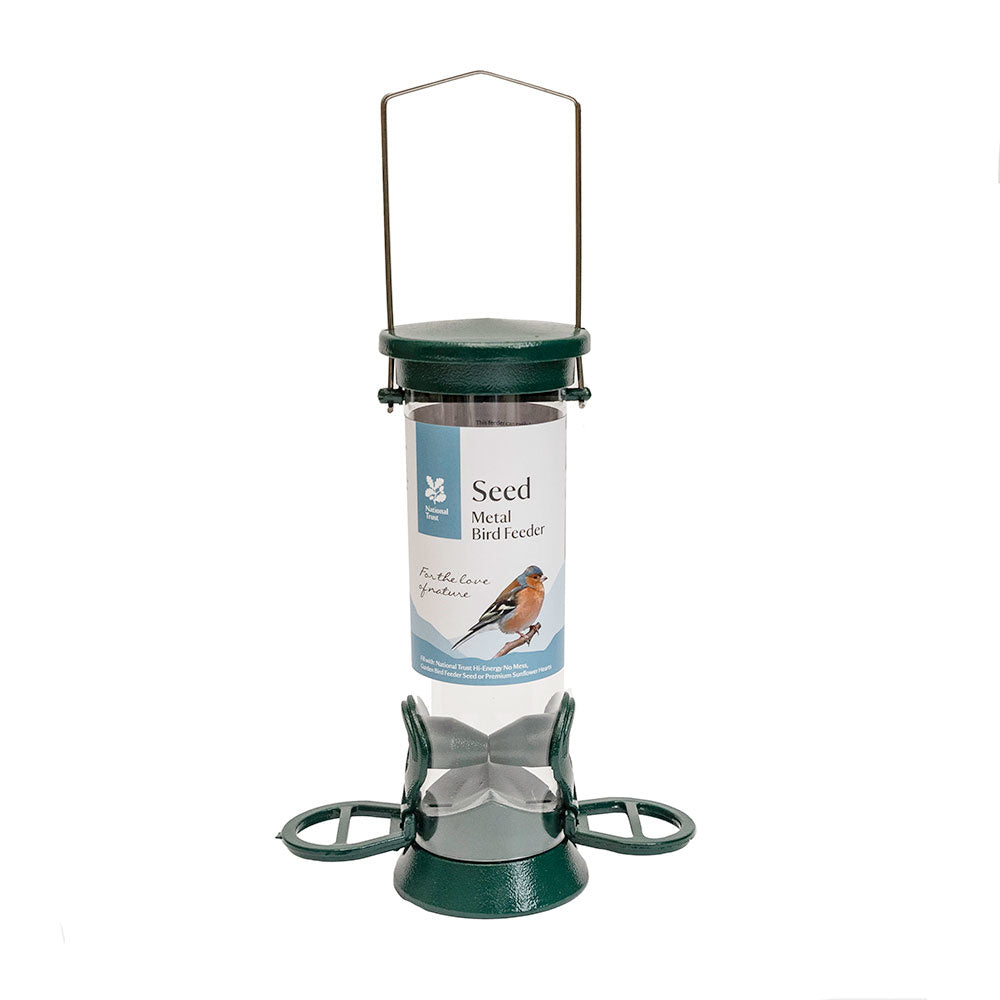 The feeder is suitable for seed and seed mixes. We recommend using Bird Feeder Seed with this feeder, look out for the new National Trust Bird Feeder Seed bag sizes available on our website. The seed has been formulated specifically for clinging bird species; the mix is also free flowing which prevents clogging in feeders. Seeds and seed mixes will appeal to a wide variety of garden bird species. The wider variety of seeds on offer, the greater number of species you will attract.
