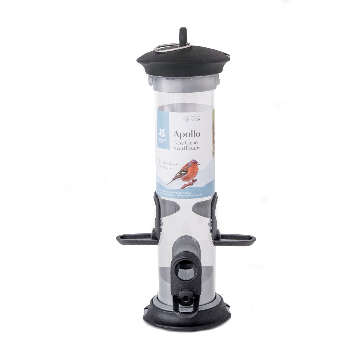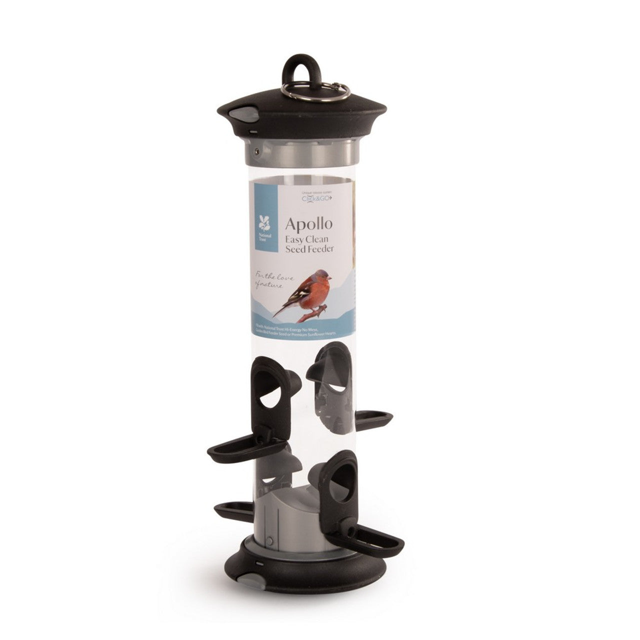 The National Trust Apollo 4 Port Seed Feeder helps to make bird feeding even easier. The base, lid and ports can all be easily removed with the unique ‘Click & Go’ release system, which allows you to dismantle, clean, reassemble and fill your Apollo feeder without the use of any tools. The unique ventilation system in the lid of this feeder prevents condensation in the tube, which helps to keep food fresh for longer.