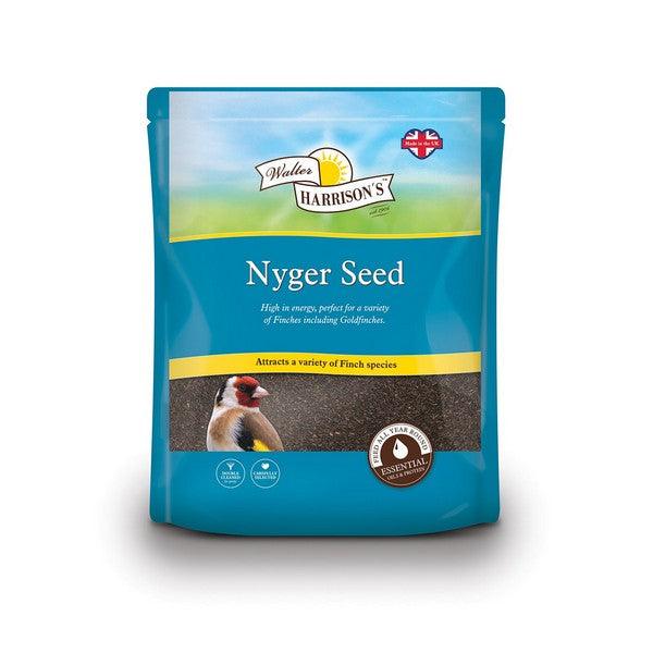 Walter Harrisons Nyger seed, a small oil rich seed packed with energy. Attracts colourful birds such as Goldfinches, Greenfinches, Chaffinches and Siskins. Feed from a specialist Nyger Seed feeder.Use alongside Ultimate Goldfinch Mix.