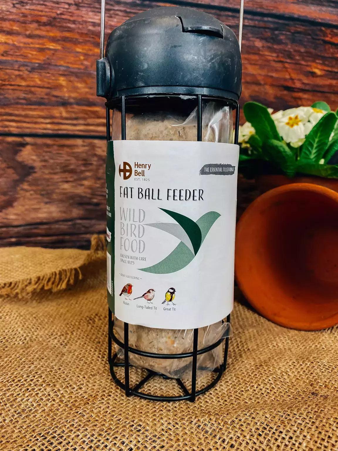 A sleek contemporary feeder in cool grey that has an easy to open lid and is simple to clean. Filled with 3 of our Henry Bell classic energy 80g fat balls.
