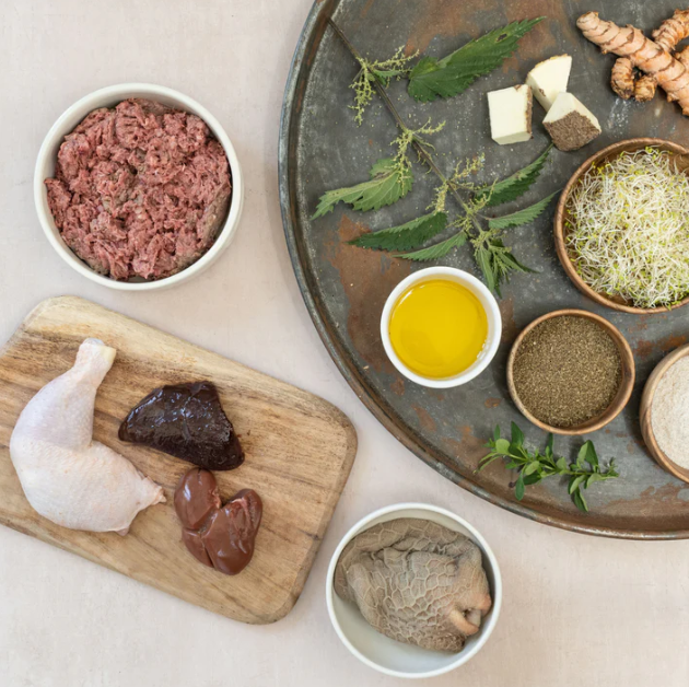Human Grade British Ingredients: Turkey with bone, Green Lambs Tripe, Liver, Kidney, Heart, Flaxseed Oil, Kelp, Celery Seeds, Alfalfa, Nettles, Psyllium Husks, Clivers and Wild Yam.
