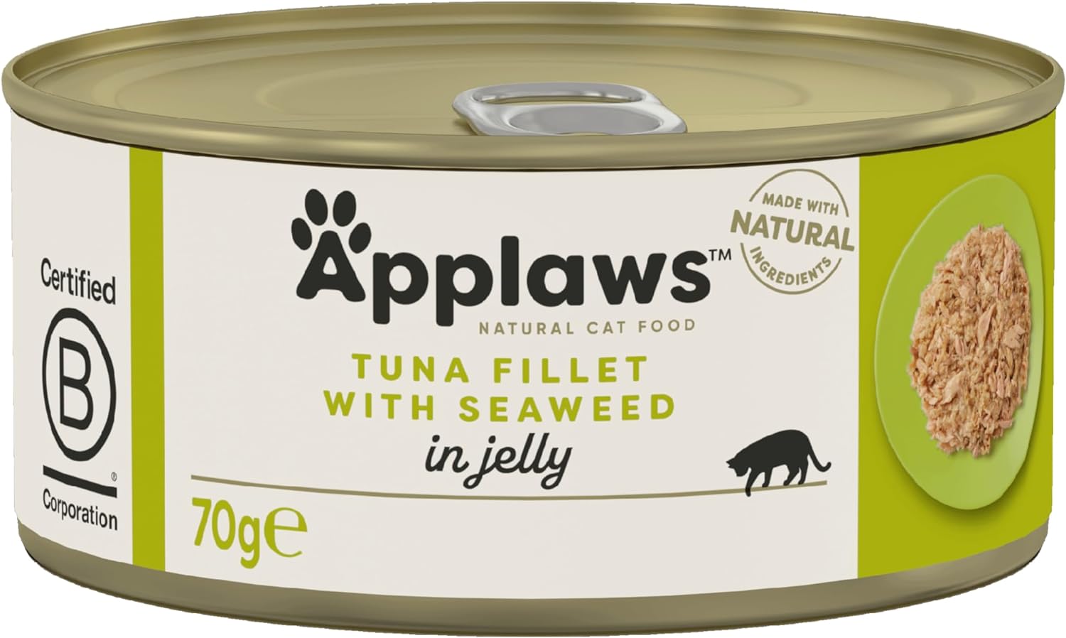 Applaws Tuna with Seaweed Jelly Tin is a premium complementary cat food made using only the natural ingredients listed on the label. Each tin is low in carbohydrate and packed with 60% protein rich tuna fillet. Seaweed is naturally high in iodine helping support your cat's metabolism and overall health.