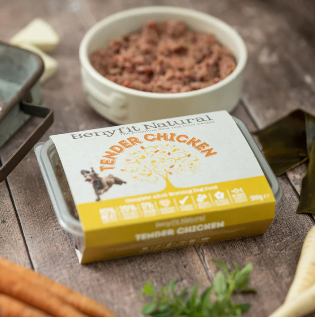 Premium raw dog food lovingly prepared by Benyfit Natural. A truly satisfying and healthy meal for your very best friend. Results in visible signs of healthy skin, teeth and gums, glossy coat, better digestion and strong bones.