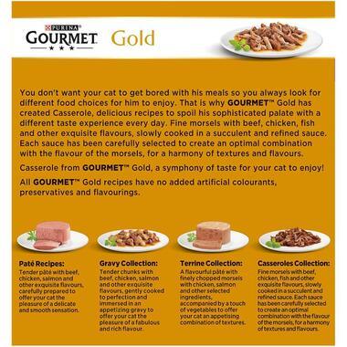 Our GOURMET Gold Double Delicacies multipack contains delicious recipes with Beef & Chicken, Beef & Chicken with Tomato, Ocean Fish with Spinach, Duck & Turkey