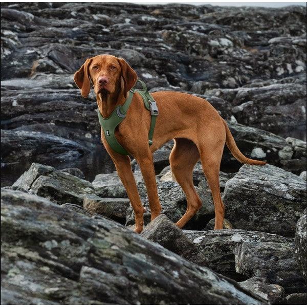 The Weekend Warrior Harness is an ergonomic adjustable harness which is suitable for active dogs. When using the harness, the pressure caused by pulling is evenly distributed on the dog's chest and the harness can be adjusted around the neck and chest, making this well-designed product fit perfectly. The fit and functionality of the product was tested on more than 200 dogs during the product development phase.
