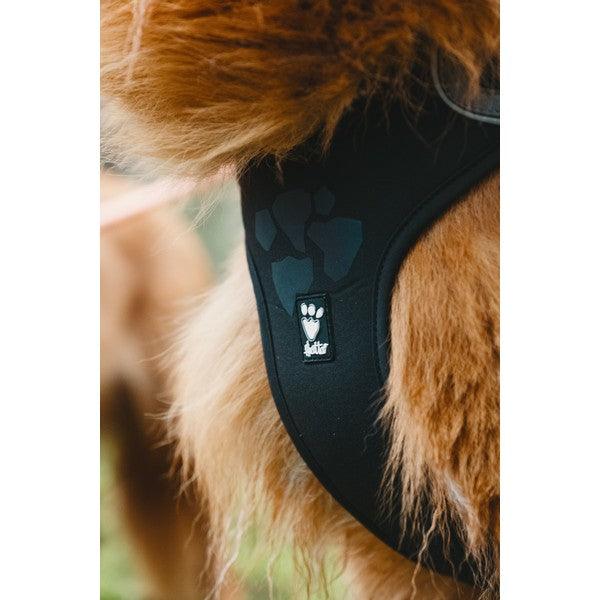 The Harness has clip buckles on the chest strap which make it easier to put the harness on the dog, as you do not have to lift its front legs. The surface material is also made of soft polyester with a weatherproof Houndtex lamination. The breathable mesh in the lining does not chafe or make the dog too hot. The fabrics are safe and contain no harmful substances.