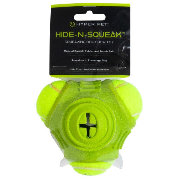 Made with durable rubber and squeaking tennis balls. Tough for power chewers. Stuff with treats for longer. playtime and a fun mental challenge. Irregular bounce for fun fetching play