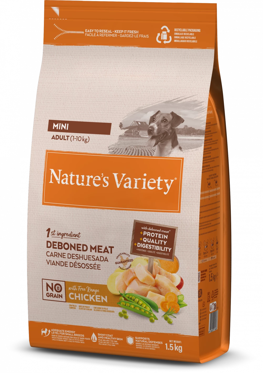 Nature's Variety Selected dry dog food for small dogs (Mini) has been specially developed with vets for smaller dog's dietary needs, and with smaller bite-size pieces for littler mouths.