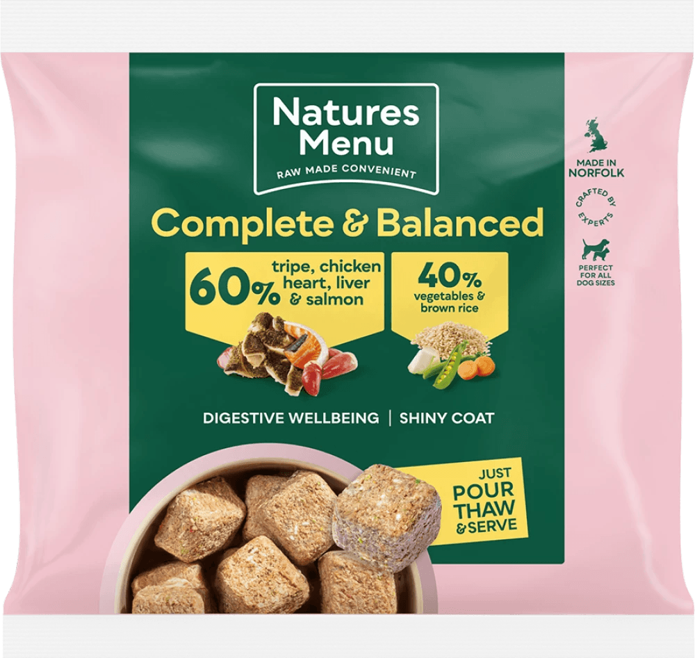 We use raw natural ingredients that you can see, understand and trust, and our in-house experts carefully craft each recipe. Every Natures Menu 60/40 recipe is made to FEDIAF standards and will provide your dog with a complete and balanced meal they’ll love and benefit from. We've taken the guesswork out of raw feeding by making sure all our nuggets are quick and easy for you to serve. Worry-free natural feeding and mess-free meal times, what more could you want.