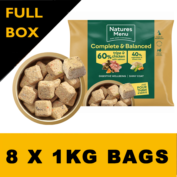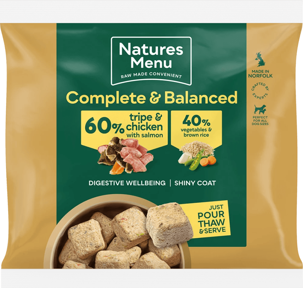 Meaty raw nuggets made with tasty tripe and chicken. A delicious complete and nutritionally balanced raw meal for dogs. Pack size 1kg