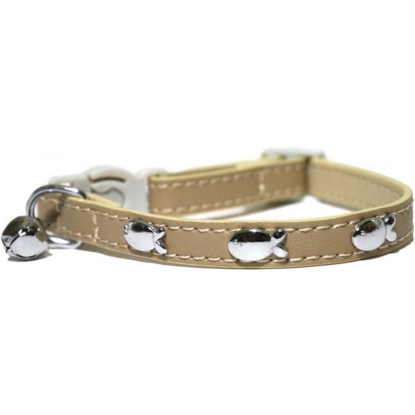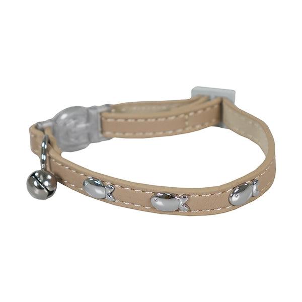 Quality fashion cat collar. Includes stylish embellishments all along the collar and a loud removable bell. Quick release buckle for safety.