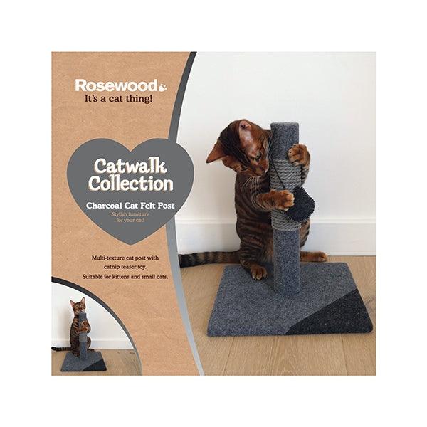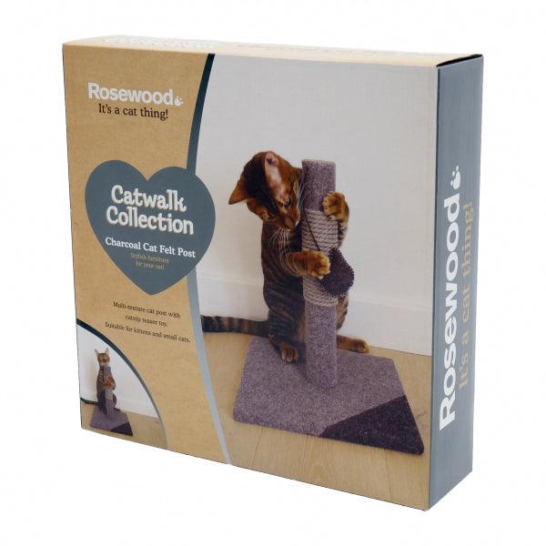 Stylish furniture for your home and cat! Made from a combination of felt, wood and strong plaited paper rope. Catnip toy to entice play. Suitable for kittens or small cats. Assembly instructions included.