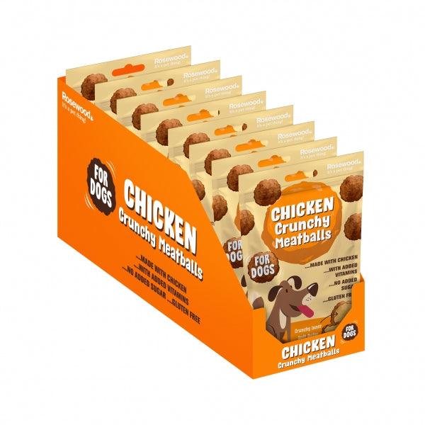 Delicious crunchy chicken meatball dog treats. Crunchy on the inside, soft on the outside. These delicious treats are gluten free, made with chicken and have added vitamins. Simply reseal the pouch with the easy reseal zip to maintain freshness. Composition: Derivatives of vegetable origin, Meat and animal derivatives (including 15.9% Chicken), Oils and fats, Minerals, Yeast. Additives: Nutritional additives per kg: Vitamin A (3a672a) 1700 IU, Vitamin D3 (3a671) 170 IU, Vitamin E (3a700) 17 mg. Technological additives: Antioxidants. Analytical Constituents: Protein 22.2%, Crude Fibre 1.1%, Crude Fat 29.2%, Crude Ash 7.4%.
