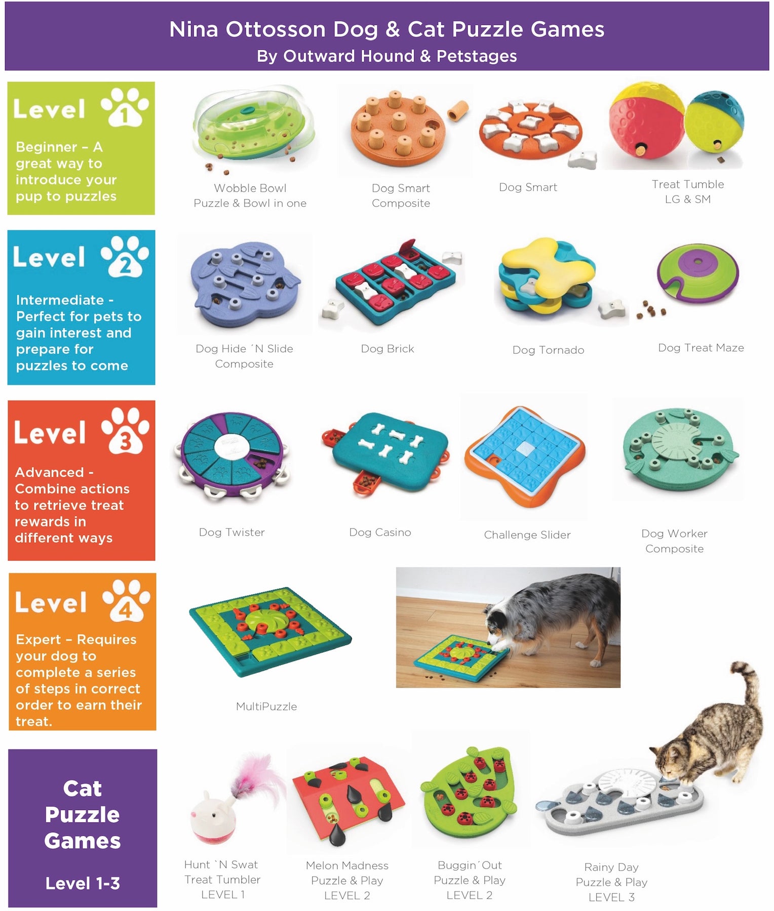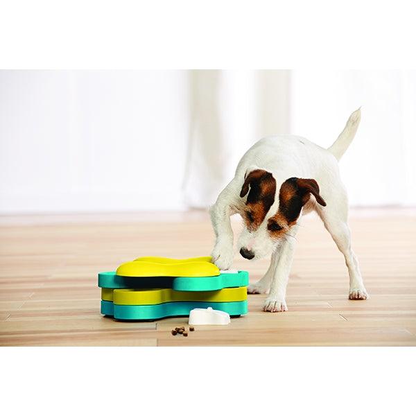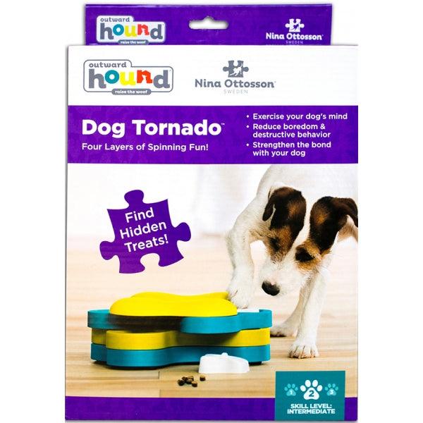 A SMARTER CHOICE: When it comes to training dogs, dog games and puzzles are a great way to engage and entertain your pup while they learn new skills. No matter the age, size or breed of your dog, Nina Ottosson dog games are as interactive as they are exciting and fun. MAKE FEEDING FUN: With 12 treat compartments in this dog game, The Dog Tornado by Nina Ottosson is smart and fun choice for mealtime as it holds your dog?s favorite wet or dry kibble. JUST KEEP SPINNING: Each level of the Nina Ottosson Dog Tornado spins as your dog searches for treats hiding inside. The spinning movement keeps your dog engaged and presents them with a fun and challenging way to play. LEVEL 2 CHALLENGE: Different from Level 1 dog games, Level 2 Nina Ottosson dog games present your dog with more interesting ways to problem solve while giving you new ways to teach and train your dog. HOW TO PLAY: Place treats or kibble in compartments of base. Cover some compartments with bones. The more covered compartments, the harder the game will be! Let the games begin! Show your dog how the game works and encourage them to find treats. Dogs are smarter than you think. Sometimes we just need to teach them! Leave some compartments uncovered and show your dog how it spins.