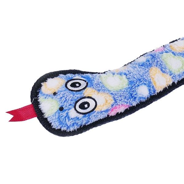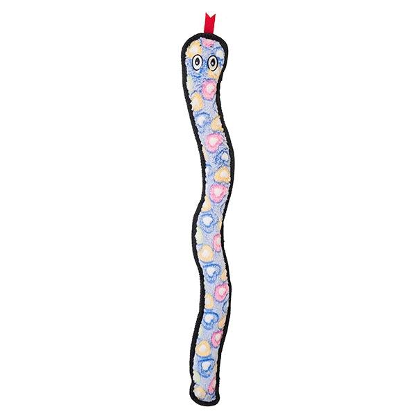 Multi textured and double stitched for super strong strength. Soft, bright and durable toy with knotted rope inside. Super tough for playing, tugging and chewing. Super tough and super long snake 69cm. Additional heart tag packaging emphasising the rope core inside.