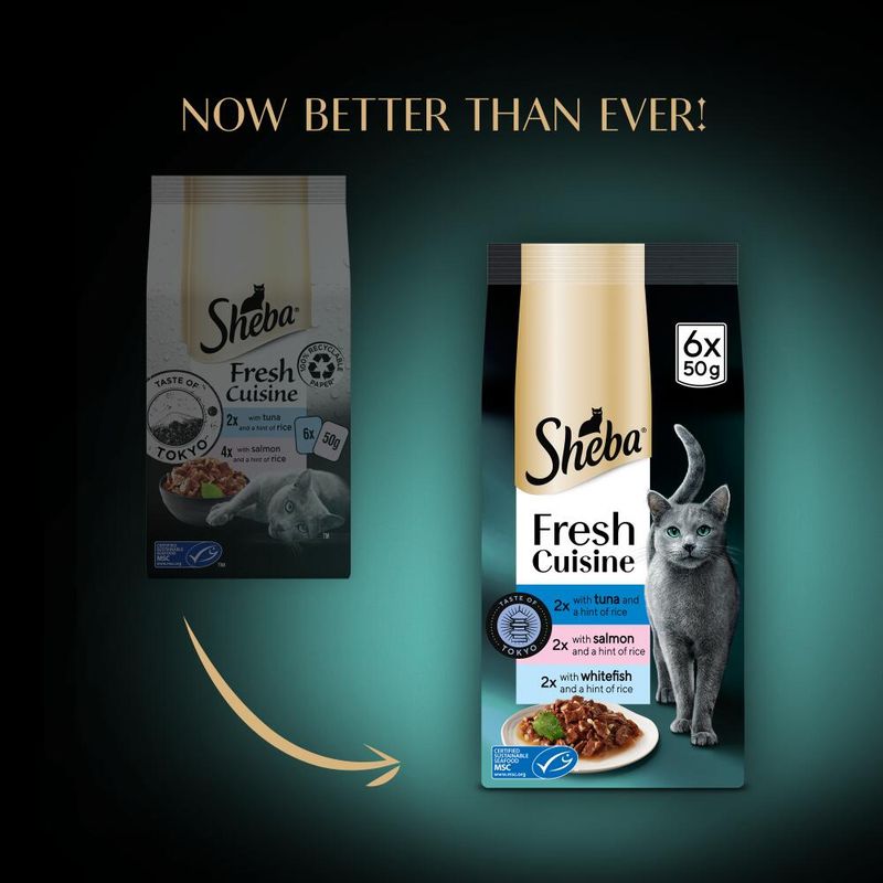 Sheba Fresh Cuisine Taste of Tokyo is perfect for globetrotting pets on the look out for new and exciting flavours from around the world! This wet food is inspired by the cuisine of Japan’s capital city, Tokyo. Your cat won’t be able to resist its delicious taste and succulent texture!