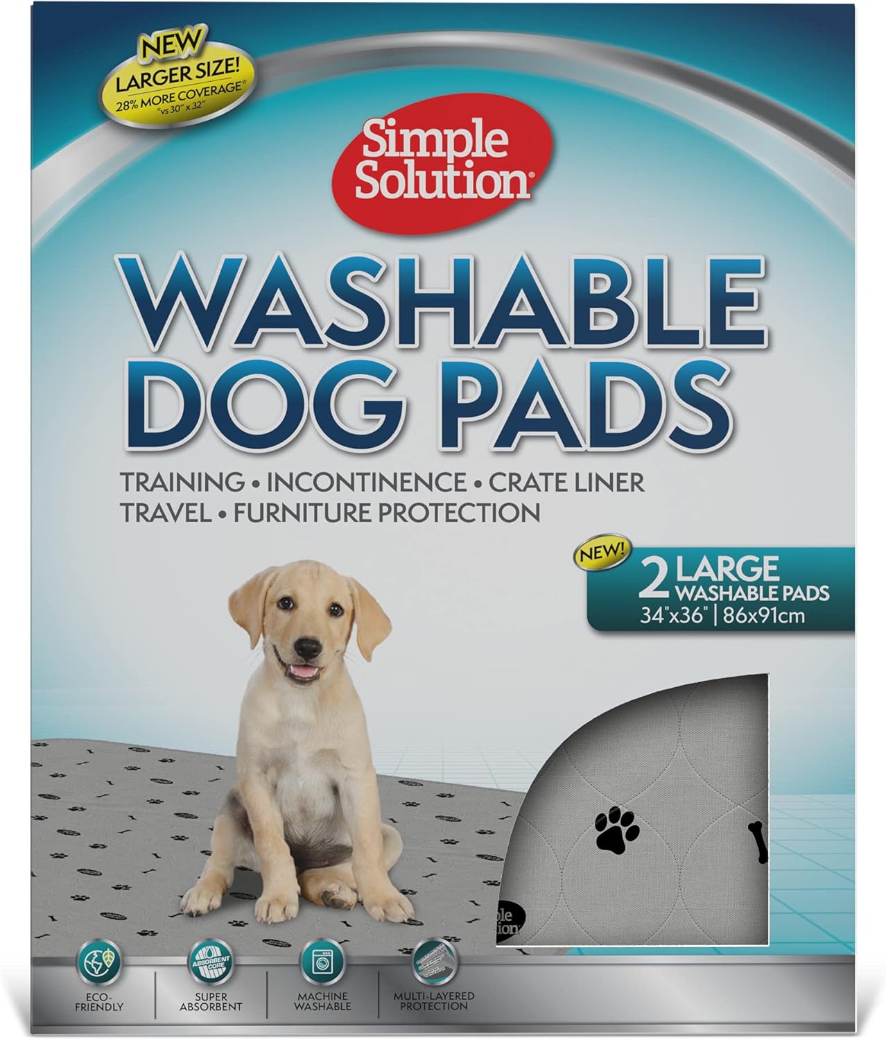 MACHINE WASHABLE: Simple Solution pads are washing machine safe, which allows you to confidently clean the dog pad without worrying about durability. The convenient 2-pack allows you to have one pad in the wash and one in use at all times
