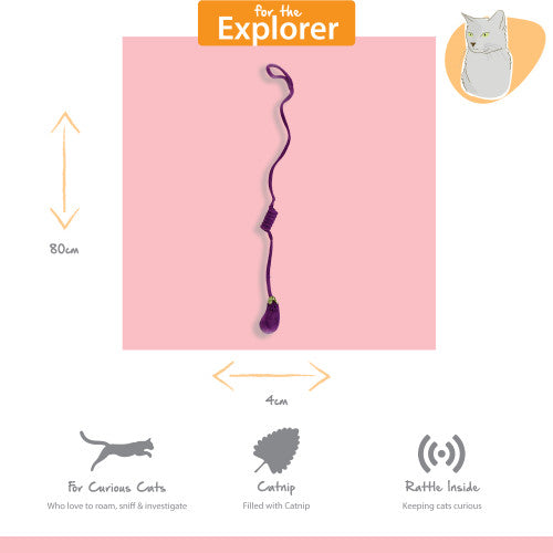 Add some bounce to playtime with the Tabby Patch Aubergine Cat Bungee! This fun, garden-inspired toy features a stretchy bungee cord that loops around your finger, turning your hand into a playful teaser your cat will love to chase, pounce, and bat. The soft aubergine toy is packed with premium catnip, a crinkly texture, and a rattle inside—combining irresistible sounds, scents, and movement to keep your feline fully engaged. Perfect for interactive play, this toy encourages exercise and bonding between you and your kitty.