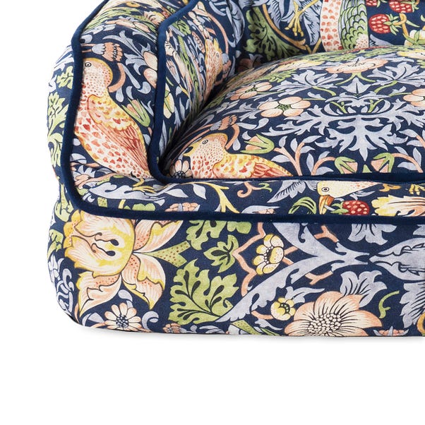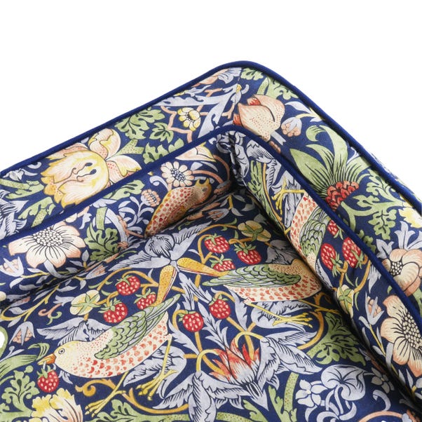 A cheeky bird pecks at delicious strawberries. The thrushes illustrated in William Morris's Strawberry Thief have been stealing hearts, as well as strawberries, since 1883. As one of Morris's most recognisable prints, the Strawberry Thief captures the classic luxury of Morris's style.